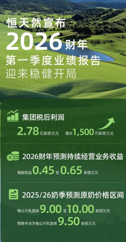 2026财年第一季度数据清晰勾勒出恒天然「核心市场驱动、多区域协同」的盈利版图。恒天然26财年第一季度税后利润2.78亿新西兰元,同比增长1500万新西兰元,这一增长既源于中国市场的强劲拉动,也离不开全球其他区域的稳定支撑。