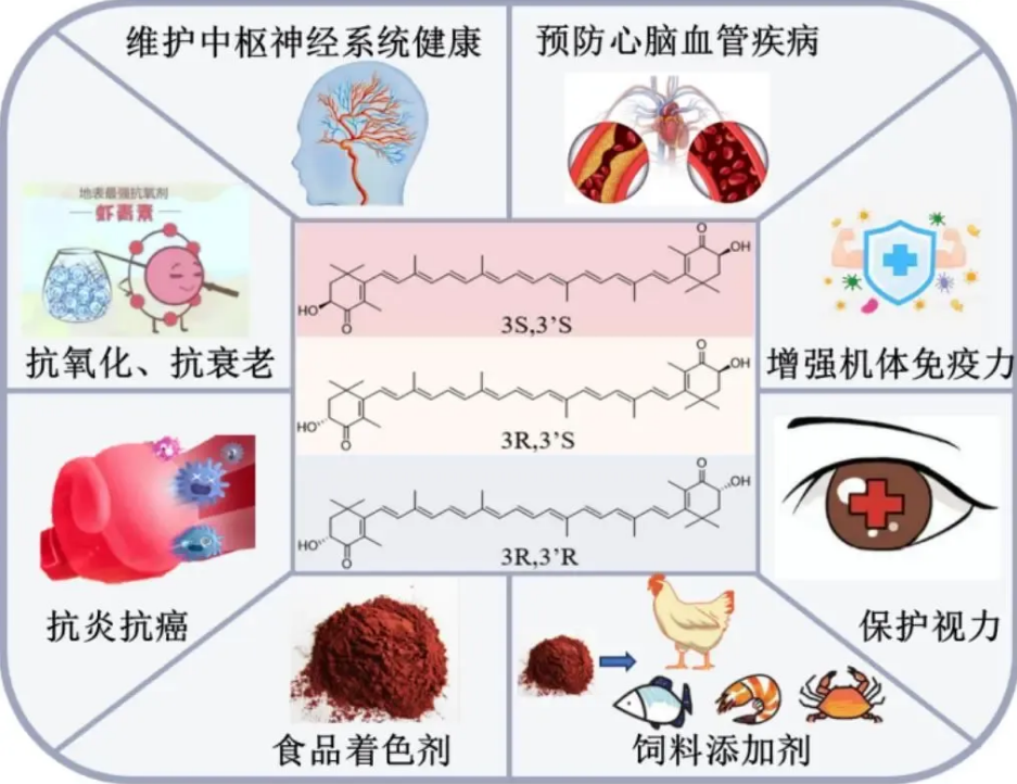 虾青素是类胡萝卜素的含氧衍生物,能有效地淬灭活性氧,具有较高的营养和药用价值。二十世纪三十年代虾青素就从虾、蟹的壳中分离出来,其生理功能到八十年代才引起广泛的重视。此后许多学者通过动物和临床实验证明虾青素有抑制肿瘤发生、增强免疫功能、预防心血管疾病等多方面的生理功能,具有广阔的应用前景。