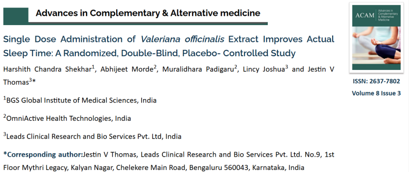 2024年10月,印度健康食品原料供应商OmniActive Health Technologies在欧洲市场推出了一款改善睡眠与压力的成分Sleeproot,即一种植物性、不含褪黑素的缬草提取物(VE,总缬草烯酸浓度为2%)。此外,OmniActive Health Technologies联合BGS Global Institute of Medical Sciences在Advances in Complementary & Alternative medicine期刊上发表了一项随机、双盲、安慰剂对照研究,对VE改善急性睡眠缺乏这一功效进行了验证。